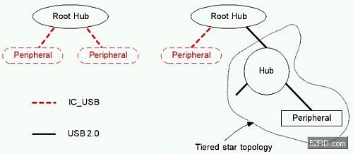 Inter-Chip USB并不支援透過Hub的連接(紅線),只有傳統(tǒng)USB可透過Hub進(jìn)行連接(黑線)。