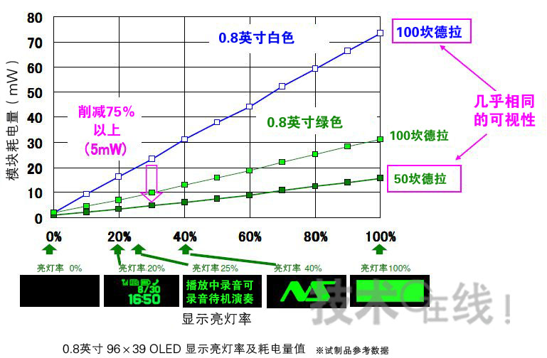 此次開發的有機EL面板的耗電量“與配備LED背照燈的液晶面板相當”。日本精機首先試制了0.8英寸的綠色面板,與該公司原來同尺寸面板相比,“可視性幾乎相同,耗電量削減了75%”(日本精機)。該公司計劃利用此次的有機EL面板低耗電技術,推動有機EL面板的普及。