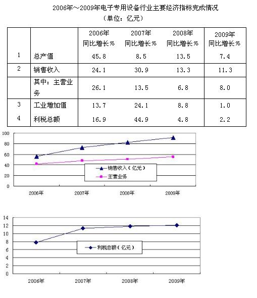 2009年我國電子專用設(shè)備行業(yè)完成的各項主要經(jīng)濟指標見表一: