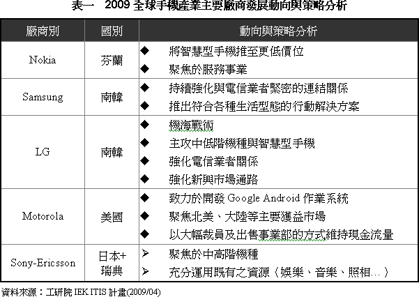 2009年全球手機領導廠商發展與策略分析