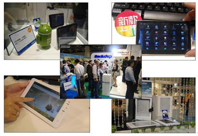 如下一組圖片,您能猜出這是什么類型公司的展臺嗎?就在不久前舉行的香港電子展上,瑞芯微一口氣推出和展示了五十多款移動互聯(lián)創(chuàng)新應用方案,涵蓋iMID(5英寸屏幕以內)、3G MID(內置3G SIM卡)、平板電腦(中國芯iPad)、智能手機(Android+3G+720P)、電子閱讀器(俗稱電子書)、無線數(shù)碼相框等一系列革新性終端產(chǎn)品。盡管這是一家芯片廠商,但它的展位上幾乎看不到芯片的影子。
