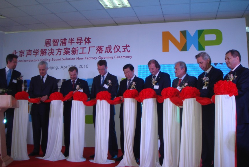 恩智浦半導體(NXP Semiconductors)今天在北京經濟技術開發區(BDA)為其在此落成的聲學解決方案新工廠舉行了盛大的開幕典禮。從而將恩智浦半導體先進的矩形揚聲器生產線從奧利地維也納轉移到中國來,以便進一步的提高中國聲學解決方案工廠的生產能力。