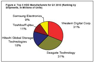 據iSuppli公司,西部數據在2010年第一季度硬盤出貨量最多,季度出貨量首次超過希捷,結束了長期屈居第二的局面。