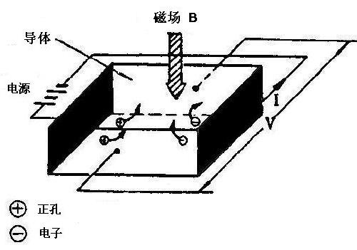 在平板半導體介質中,電子移動(有電場)的方向,將因磁力的作用(有磁場),而改變電子行進的方向。若電場與磁場互相垂直時,其傳導的載子(電子或電洞),將集中于平板的上下兩邊,因而形成電位差存在的現象。該電位差即霍爾電壓(霍爾電壓)在實際的霍爾組件中,一般使用物質中之電流載子為電子的N型半導體材料。將一定之輸入施加至霍爾組件時之輸出電壓,利用上述之關系予以分析時,可以獲致下列的結論:
