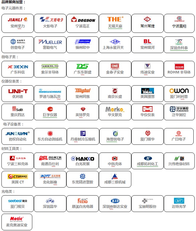 展示范圍:電子元器件、電子材料;制造設備、測試/測量設備;汽車電子、航空航天/軍用電子、交通電子、工業自動化控制;消費電子、電腦/網絡系統及外圍設備、通信產品/廣電設備;電力電子、安防電子