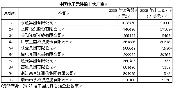 第23屆中國(guó)元件百?gòu)?qiáng)企業(yè)名單于2010年6月22日公布。從本次百?gòu)?qiáng)企業(yè)的評(píng)選結(jié)果,以及中國(guó)電子元件行業(yè)協(xié)會(huì)(下簡(jiǎn)稱中電元協(xié))公布的數(shù)據(jù)上可以看出,在經(jīng)歷了全球經(jīng)濟(jì)危機(jī)之后,中國(guó)電子元件行業(yè)正在穩(wěn)步復(fù)蘇,眾多元件企業(yè)正在積極尋求在“后危機(jī)時(shí)代”的生存和發(fā)展之道。