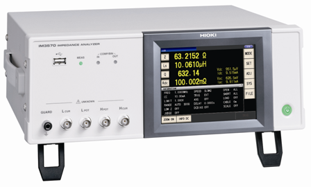 阻抗分析儀IM3570是實現了測量頻率4Hz~5MHz的日置首款高精度•高速阻抗分析儀。根據客戶的用途,可以與原來本公司的LCR產品一樣選擇將測量值用數值顯示模式來顯示頻率/電平特性的測量圖表。