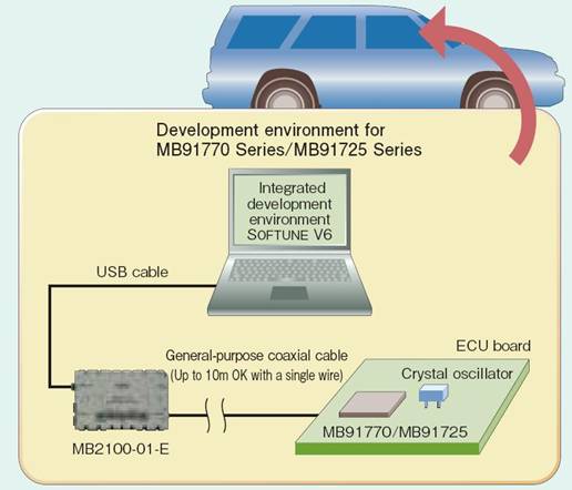 一般產品必須利用ICE主單元和驗證用評估芯片來進行系統檢驗,為了降低驗證的復雜度,我們為新一代MCU產品提供芯片上(on-chip)的偵錯方式。它采用單線調試接口,可以實現汽車評估或一致性測試,并且能夠利用通用同軸電纜、在高達10米的范圍內實現小型ICE主單元和目標電路板之間的通信。這可以簡化按照常規難以實現的汽車評估。