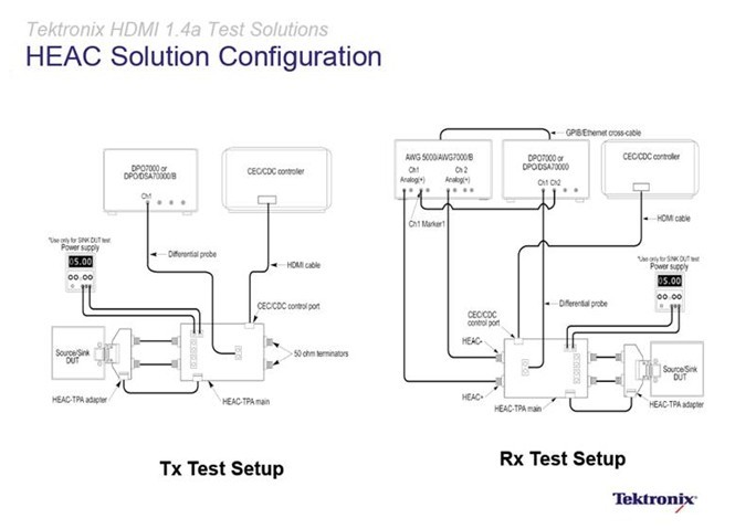 圖3:針對HDMI1.4a標準的以太網和音頻回傳通道(HEAC)發送端和接收端測試配置。