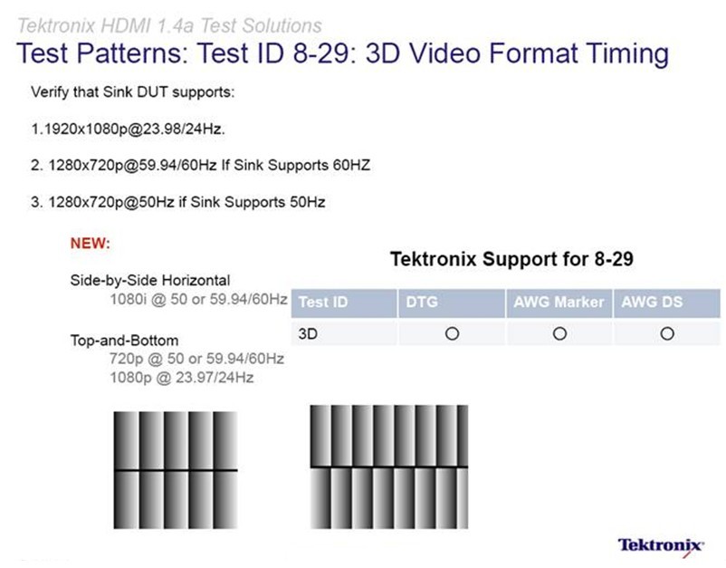 圖5:泰克參與制定了HDMI1.4/1.4a關于強制3D視頻格式的一致性測試標準。