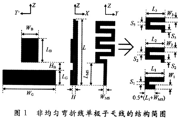 彎折線結(jié)構(gòu)在減小天線尺寸和改善天線帶寬特性方面,已經(jīng)成為現(xiàn)代天線設(shè)計(jì)的新熱點(diǎn)。為了改善彎折線天線的性能,研究者針對不同的應(yīng)用和特性要求,提出了多種改進(jìn)結(jié)構(gòu),其中主要有雙彎折線天線、折疊式彎折線天線、立體式彎折線天線、漸變式彎折線天線、行波彎折線天線和彎折線縫隙天線。