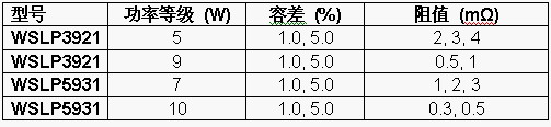 WSLP3921電阻的尺寸為0.394英寸 x 0.205英寸(10.0mm x 5.2mm),最大高度為0.020英寸(0.5mm),WSLP5931的尺寸為0.591英寸 x 0.305英寸(15.0mm x 7.75mm),高度為0.020英寸(0.5mm)。專利的加工工藝使電阻具有0.0003Ω~0.004Ω的極低阻值,以及1.0%和5.0%的嚴格容差。