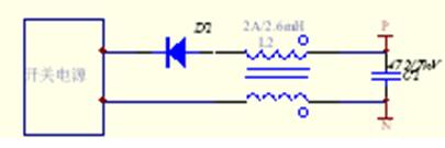 第一種方法的抗干擾設(shè)計(jì)考慮如圖7所示,圖中的高頻電容C1用來吸收高頻脈沖,二極管D2用來抑制線路寄生電感與電容C1振蕩。