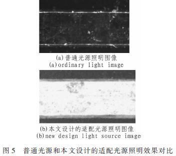 基于以上條件,本文設(shè)計(jì)了專用于PCB厚密板的適配環(huán)形光源,為考核光源的實(shí)際效果,將光源和鏡頭對(duì)準(zhǔn)PCB上同一區(qū)域。鏡頭倍率也調(diào)節(jié)至相等。采集到如圖5所示的對(duì)比圖像。