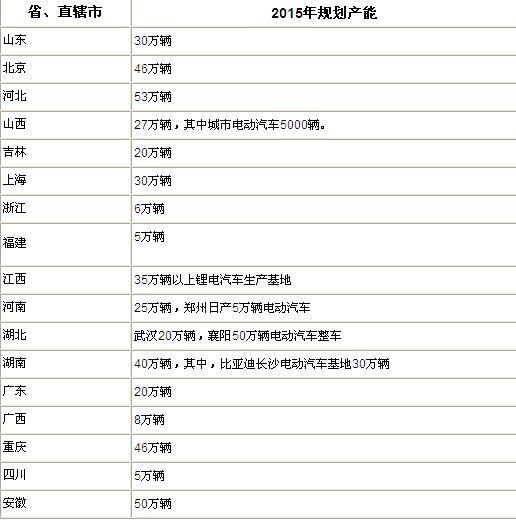 根據粗略統計,各省、直轄市對新能源汽車及電動車的未來五年規劃: