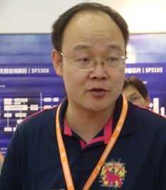 根據馮總的介紹,音頻芯片SP332X,也稱全數字高保真iPod/iPhone/iPad Docking主控芯片,該芯片有著它的創新應用,它不僅是屬于節能系列的,也是國內唯一支持蘋果Mac OS X操作系統的芯片。雖然說插卡音箱不是一個新的概念,但這個芯片不僅完成插卡音箱的基本功能,還包括像嵌入USB聲卡功能、支持32K/44.1K/48K采樣率、完全支持蘋果Digital Audio協議(1.0.1~1.0.3)等特點。如果讓iPad、iPhone里面裝上這塊芯片,就能實現高保真播放。利用USB端口傳輸數字音頻,讓用戶得到很好的視聽體驗。目前主要應用在車載音響、iPod、iPhone和iPad Docking上。