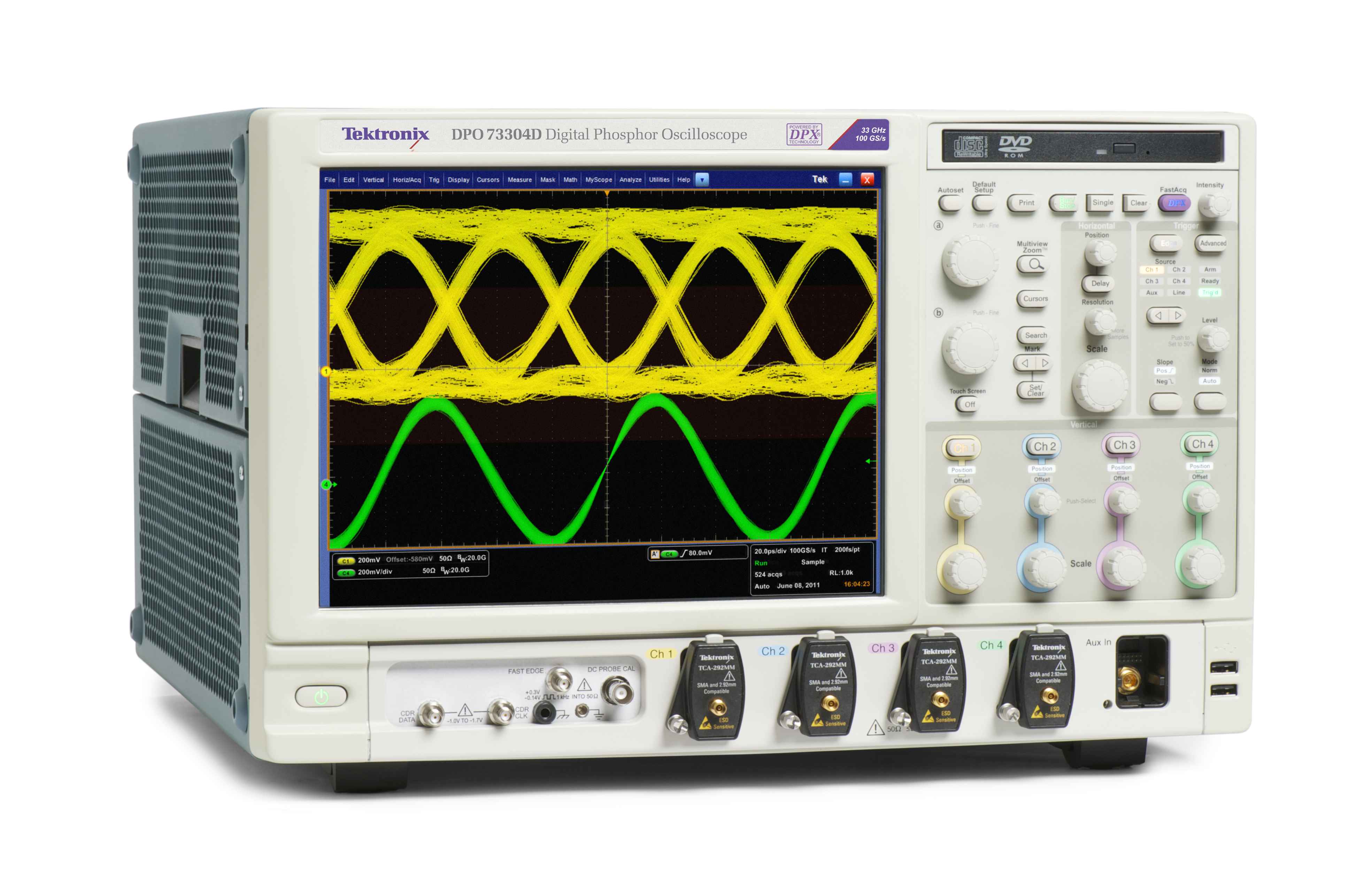 DPO/DSA70000D型號產品將于2011年第4季度全球上市。這四個上市產品包括33GHz帶寬的DPO73304D和DSA73304D、25 GHz帶寬的DPO72504D 和DSA72504D。