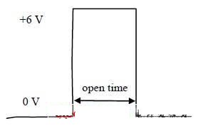 采用可控制開關的辦法難于完成測量,需采用其他辦法進行繼電器觸點通斷過程的模擬。首先對繼電器觸點處電壓波形進行分析,由于瞬時通斷測量儀接入抖閉觸點的電壓為6 V,通過抖斷觸點的電流為10 mA,當繼電器觸點出現抖閉現象時電壓波形應如圖3 所示(抖閉觸點在正常狀態時所加的+6 V 電壓在抖閉狀態時被直接短路,電位被鉗制在0 V),形成一個負跳變脈沖,其抖閉時間為脈沖寬度,而出現抖斷觸點的電壓波形如圖4 所示。
