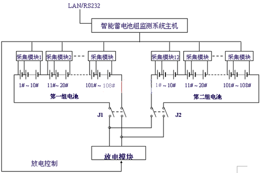 與電池巡檢儀不同,在這個(gè)系統(tǒng)增加了一個(gè)放電模塊,放電模塊能承受較大的沖擊電流,它接收監(jiān)控主機(jī)的放電命令,接通放電回路,電池通過(guò)負(fù)載放電,同時(shí)采集模塊將采集每節(jié)電池電壓的變化,在主機(jī)中得到了每節(jié)電池內(nèi)阻特性曲線。放電模塊也可作為長(zhǎng)時(shí)間放電負(fù)載,實(shí)現(xiàn)對(duì)電池容量的核對(duì)性測(cè)試及整組電池的活化處理。這個(gè)系統(tǒng)實(shí)現(xiàn)對(duì)蓄電池全方面的監(jiān)測(cè)和維護(hù)管理。