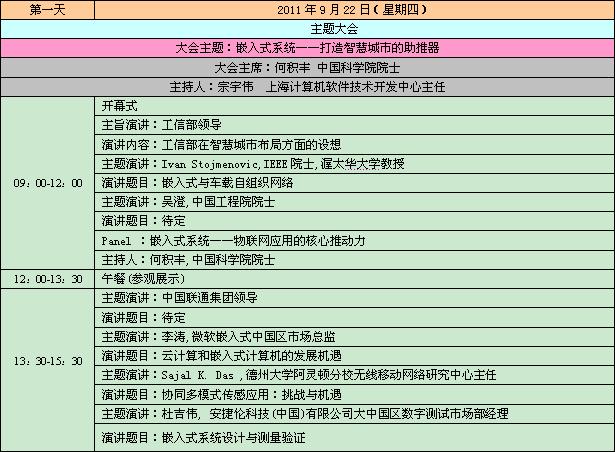 在科技部、工信部及市科委的支持下,由上海市計算機學會和上??茖W院等共同主辦的“2011中國國際嵌入式大會暨展覽會” 將于2011年9月22日—23日在上海光大會展中心國際大酒店舉行。參會注冊方式:致電021-54065141、54065157或登陸www.embeddedchina.org