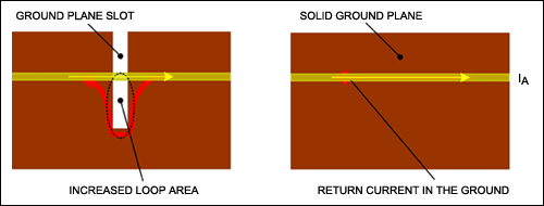 圖9. 盡可能保持地層完整,否則返回電流會引起串擾。[page]