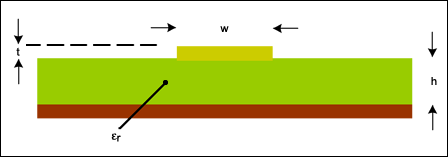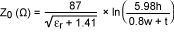 式中,εr為電介質的介電常數,h為引線距離地層的高度,w為引線寬度,t為引線厚度(圖7)。w/h介于0.1至2.0、εr介于1至15之間時,該公式的計算結果相當準確。