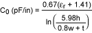 為評估引線長度的影響,確定引線寄生參數對理想電路的去諧效應更實用。本例中,我們討論雜散電容和電感。用于微帶線的特征電容標準方程為: