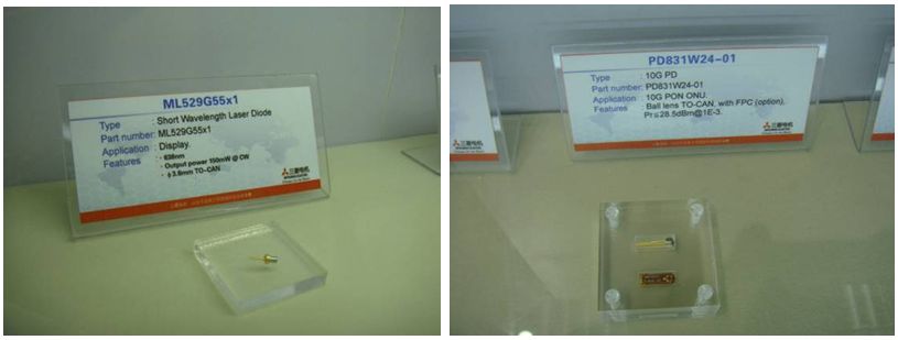 同期,三菱電機還展示了新推出的應用于G-PON ONU的 DFB-LD, 該款DFB-LD 有著寬tolerance curve 和較小的 beam angle和較小的tracking error等優點。在10G xG-PON 方面,公司也新推出了應用于ONU的1.27μm DFB-LD。為無源光網絡的發展提供了必要的支持。[page]