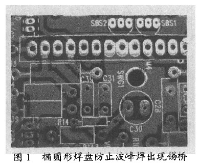 4)對于具有較高引腳數的器件如接線座或扁平電纜,應使用橢圓形焊盤而不是圓形以防止波峰焊時出現錫橋(圖1)。