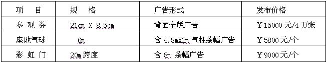 空場地費用:(36 m2起租); A類展區:880元/ m2; B類展區:830元/ m2;