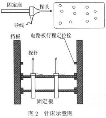 針床是電路板測試系統的重要部件,是電路板信號導出的平臺。針床的通用性較差,一般是每種電路板對應一個特定的針床,這使系統的通用性受到很大的限制。為使針床具有一定的通用性,本系統中對針床的相關部件進行了一些改進: