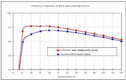 帶有Power56 MOSFET和SO-8驅動器的分立式解決方案的板卡占位面積在120mm2左右,而MCM只需要64mm2或36mm2。后者模塊中的各個器件經精心挑選并全面優化,相比分立式解決方案其性能更高,熱性能也更好 (圖6和圖7)。受電腦行業的推動,這種解決方案可使電流高達30A,并針對最高1MHz的開關頻率優化。甚至在大電流設計中即使考慮到熱設計規則,也無需散熱器,因系統中空氣流對于該芯片散熱是足夠的。[page]
