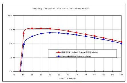 對于更大的電流,為了讓熱量擴散到更大的表面上,多相的分立式解決方案(如2-3個DrMOS器件) 是首選。另一個權衡是開關頻率―如果不是因EMI要求或空間限制而預先確定 (利用更高的開關頻率來減小無源元件的尺寸),更低的開關頻率有助于降低開關損耗,并最終降低溫度。