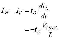 (3)式中的t是時間,而VOUT是電源轉(zhuǎn)換器(如圖1所示)的輸出電壓。當L減小時,便會相應減少。由于tD不會受ILS、L和VOUT影響,并且VOUT也不受L影響,所以IN會隨著L而下降。這種關系可用下式表示: