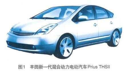 以作為混合動力電動汽車研發前沿的豐田汽車公司為例,所開發的混合動力電動汽車已達到實用化水平,自1997年所推出的世界上第一款批量生產的混合動力電動汽車Prius開始,其后又在2002年推出了混合動力面包車,該車混合動力系統采用了世紀首次批量生產的電動四輪驅動及四輪驅動力/制動力綜合控制系統。2003年,豐田又推出了新一代Prius,也被稱為“新時代豐田混合動力系統——THS Ⅱ”(見圖1),節能效果可達到100km油耗不足3L。從2004年開始,豐田公司向歐洲市場推出了一款新的Lexus RX型豪華混合動力轎車。豐田公司計劃2012年全部采用汽油電力混合發動機,以提高燃油經濟性和降低排放污染。