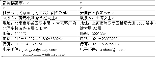 德州儀器 (TI) 半導體創新技術為未來世界開啟無限可能。攜手全球 80,000 家客戶,TI致力打造更智能、更安全、更環保、更健康以及更精彩的生活。TI把構建美好未來的承諾付諸于日常言行的點滴,從高度負責地生產半導體產品,到關愛員工、回饋社會。這一切僅是 TI 實踐承諾的開始。TI 在納斯達克交易所上市交易,交易代碼為 TXN。TI 半導體產品信息中心免費熱線電話:800-820-8682。