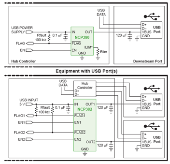 USB負(fù)載開關(guān)提供用于USB主機(jī)的過流保護(hù)(OCP)。安森美半導(dǎo)體的相關(guān)產(chǎn)品有NCP380、NCP382單、雙通道負(fù)載開關(guān)。這些器件可防止采用USB的設(shè)備端口因短路或過載事件而損壞,其短路檢測時間僅為1微秒。這些器件具有精確的電流限制閾值、固定或可調(diào)電流限制(500 mA至2.1 A),支持在電流平板電腦充電,獲得了UL和CB認(rèn)證。