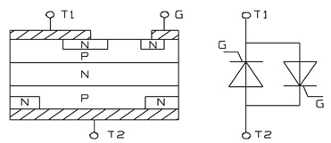 圖1 雙向可控硅結(jié)構(gòu)及等效電路