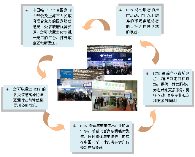 ICTS作為中國最具影響力的國際工業品牌展“中國國際工業博覽會”下最重要的專業展之一,多年來依托中國戰略性新興產業的政策導向,立足市場需求,站在行業的前沿,聚焦業內熱點,為信息企業提供集產品展示、信息交流、供需交易于一體的高端營銷平臺,同時,也是中國每年年底前的信息業內人士聚會的嘉年華。