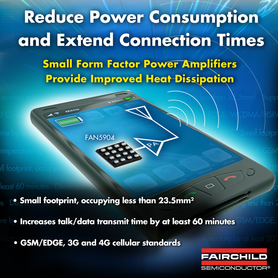 作為正在實施的便攜產(chǎn)品計劃的一部分,飛兆半導體通過與客戶密切合作開發(fā)出FAN5904器件,這是一款支持GSM/GPRS/EDGE、3G/3.5G 和4G功率放大器(PA)的大功率高效同步降壓轉換器,能夠降低無線便攜設備的功耗,將連通時間延長60分鐘以上。FAN5904具有小于23.5 mm2的占位面積,還能夠在維持射頻性能的同時,將功率放大器的工作溫度降低至少20ºC。