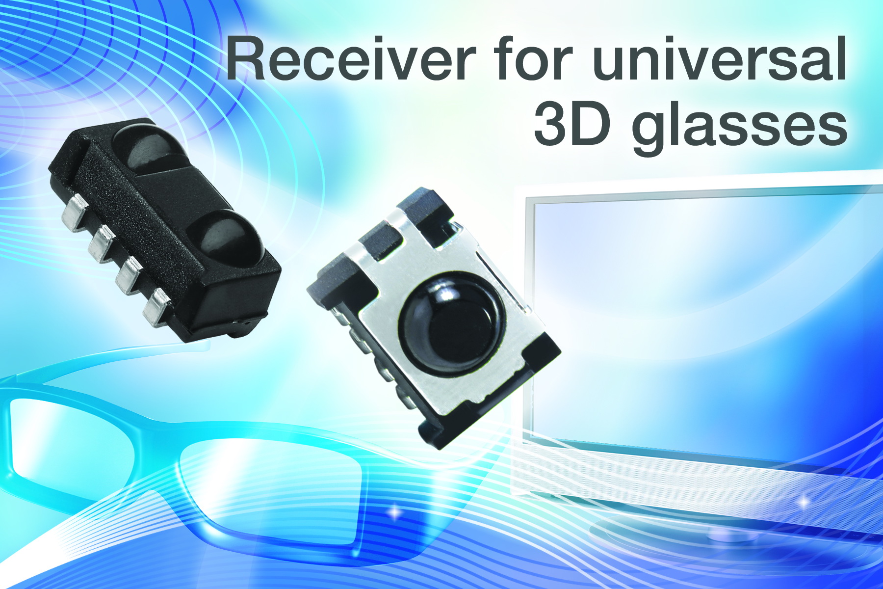 現(xiàn)在市場上出售的大多數(shù)液晶3D電視都在使用快門式眼鏡,將左眼和右眼的圖像分開。盡管人們做了很多努力,試圖將用來同步3D電視與相應(yīng)的主動(dòng)快門式眼鏡的技術(shù)實(shí)現(xiàn)標(biāo)準(zhǔn)化,但業(yè)界離這個(gè)目標(biāo)還相當(dāng)遙遠(yuǎn),各個(gè)制造商提出了大量互不兼容的紅外和射頻協(xié)議。標(biāo)準(zhǔn)的缺失催生了“通用3D電視機(jī)眼鏡”市場,這種眼鏡能夠與任何使用主動(dòng)眼鏡技術(shù)的3D電視配合工作。新的TSMP6000和TSMP77000是表面貼裝紅外接收器,可接收任何用于3D電視同步的紅外信號(hào),簡化了通用3D電視眼鏡的設(shè)計(jì)工作。