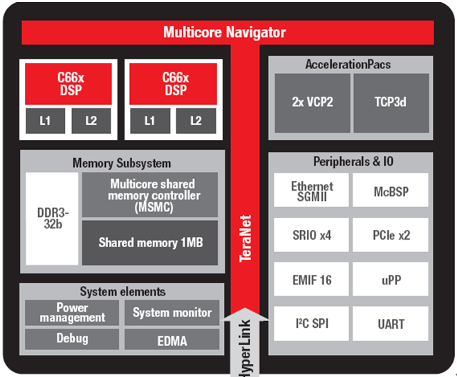支持與其它 KeyStone 架構(gòu)器件高達(dá) 50GBaud 互連的 HyperLink 可實現(xiàn)資源擴展;