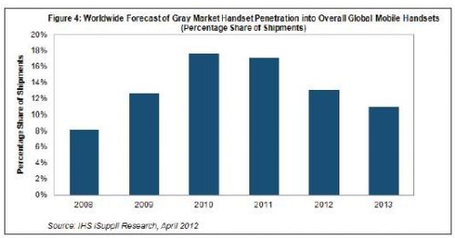 - 2010和2011年,手機灰市占總體手機出貨量的17-18%