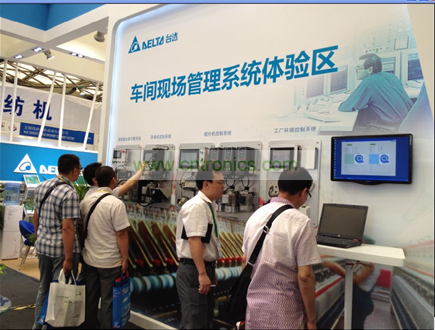 2012年6月12-16日,臺達自動化以“高效管理 節能減排”為主題精彩亮相中國國際紡織機械展覽會暨ITMA亞洲展覽會。在展會期間展出紡織廠的信息化高效管理系統、車間現場管理系統方案、紡織控制系統以及臺達為紡織行業客戶量身定制的一系列全面解決方案和貼心專業服務,如工廠環境控制系統,清梳聯自調勻整系統、并條機控制系統、粗紗機控制系統和細紗機動態展品等,同時,還動態呈現臺達紡織行業的高端產品——臺達印染多馬達同步動態演示系統。