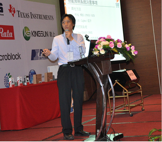 ;歐佩捷科技工程部主任翁大豐介紹了《無電解電容并兼容可控硅調(diào)光器的發(fā)光二極管燈泡驅(qū)動方案》,從可調(diào)光集成LED燈泡的角度介紹和分析對應(yīng)的LED驅(qū)動方案的要求以及相應(yīng)的策略。翁主任將從可控硅調(diào)光器的特點(diǎn)出發(fā),探討通常對應(yīng)LED驅(qū)動器的閃爍事宜及輸出光顏色變化事宜。最后針對上述議題,具體介紹無電解電容并兼容可控硅調(diào)光器的發(fā)光二極管燈泡驅(qū)動方案并討論其結(jié)果。