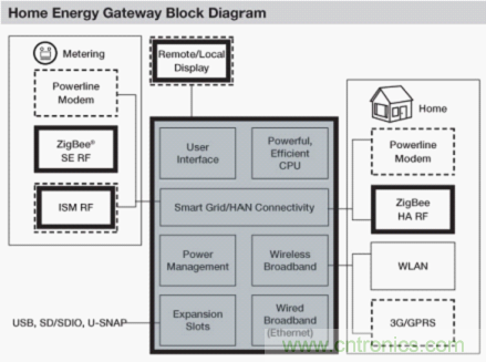 在部署具有通信功能的電表后,可以向業主提供許多應用,以便優化整體能源管理。對電力公司來說,這可以作為一種管理電網負荷并防止電力需求激增的方式。此外,家庭能源管理系統的功能還可以包括:從智能電表中采集實時能耗數據,從各種家電中采集功耗數據;控制家電的開啟/關閉;生成儀表板,以提供關于能源使用情況的反饋信息;提供控制菜單,對家電進行有效控制;提供與電力公司和/或互聯網之間的鏈接……目標應用包括家庭局域網絡(HAN)、家庭能源網關以及家庭自動化等。