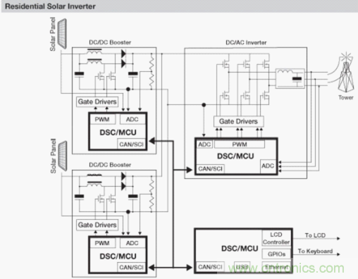 圖2:基于飛思卡爾MCU和DSC的家庭太陽能轉換系統