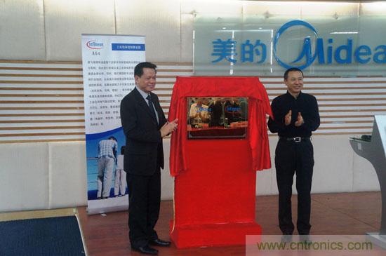 英飛凌科技(中國)股份有限公司總裁兼執行董事賴群鑫和美的生活電器總裁甄少強共同為聯合實驗室揭幕。