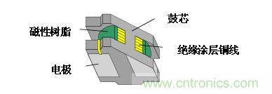 上述LQH系列在鼓芯外面纏繞的絕緣涂層銅線的周圍,應(yīng)用的磁性樹脂起到了減少漏磁通、保護(hù)絕緣涂層銅線,提高產(chǎn)品強(qiáng)度的作用。構(gòu)造概論如圖2所示。