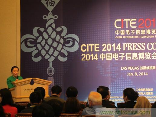 美國當地時間2014年1月8日下午,中國電子信息博覽會(CITE)組委會在拉斯維加斯CES展期間召開推介會,介紹第二屆中國電子信息博覽會(CITE 2014)及相關組織籌備情況,邀請美國及全球各地的電子信息企業、相關協會組織及專業媒體參加博覽會。